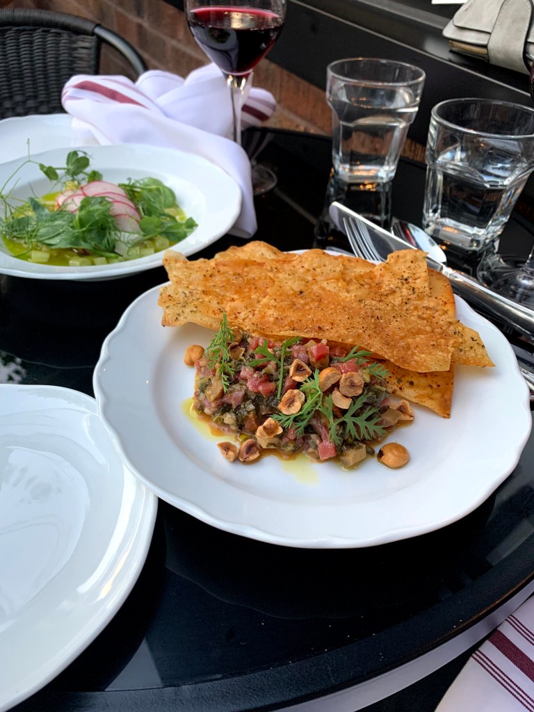 - La seconde fois, je me suis présentée sans réservation, car avec la COVID-19, le restaurant offrait des tables sur sa terrasse, sans réservations. Après une attente d’environ une heure, MAIS avec apéro pendant notre attente, nous avons eu notre table