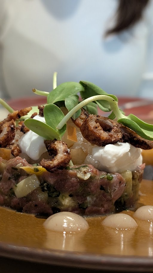 Le canard en tartare est réussi, la texture agréable, mais la présence de poire était un peu trop marquée à mon goût. J’aurais préféré plus de viande et un peu moins de fruit. Malgré tout, ça reste un beau plat à partager.